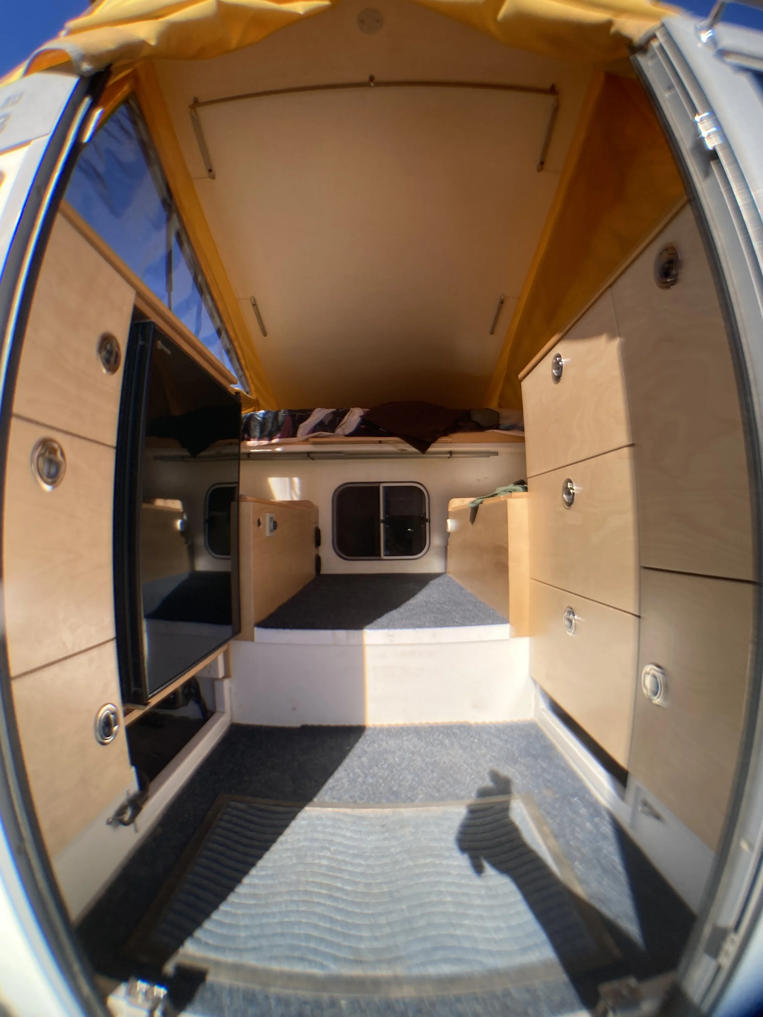 Slide on camper Landcruiser works including completely re-done birch ply kitchen cabinetry: